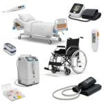 Fully adjustable electric hospital bed for home care comfort.